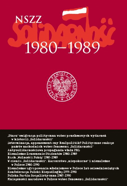 U dołu okł.: "Stara" emigracja polityczna wobec przełomowych wydarzeń w historii "Solidarności". Determinacja, appeasement czy Realpolitik? Polityczne reakcje państw zachodnich wobec fenomenu "Solidarności". Antysolidarnościowa propaganda władz PRL. Niezależne Zrzeszenie Studentów 1980-1989. Ruch "Wolność i Pokój" 1985-1989. W cieniu "Solidarności". Harcerstwo "niepokorne" i niezależne w Polsce 1980-1990. Niezależne ugrupowania młodzieżowe w Polsce lat osiemdziesiątych. Konfederacja Polski Niepodległej 1979-1990. Polska Partia Socjalistyczna 1987-1990. Mniejszości narodowe w Polsce wobec fenomenu "Solidarności".