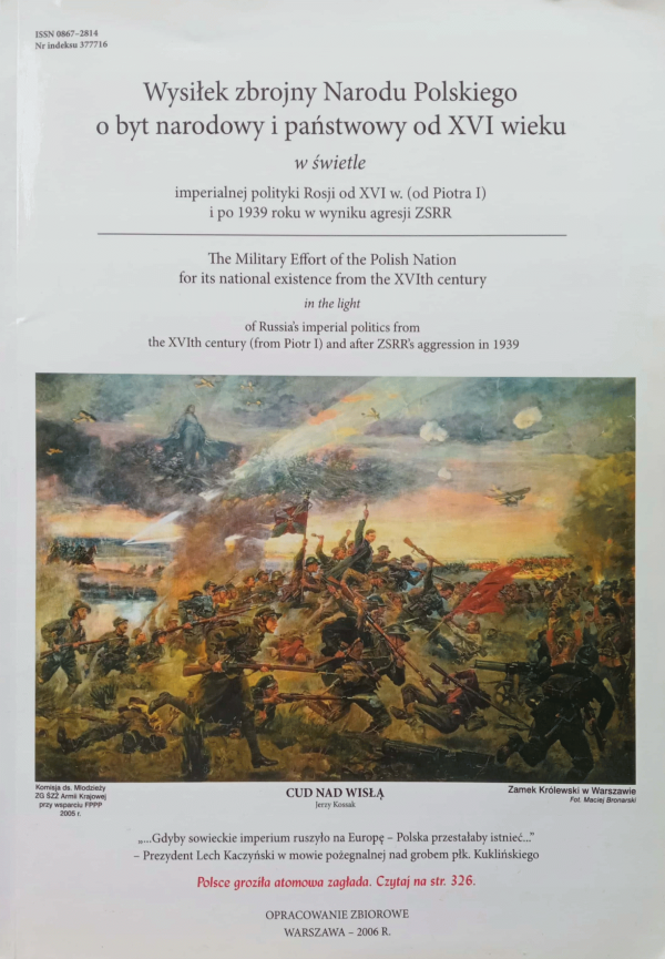 Wysiłek zbrojny narodu polskiego o byt narodowy i państwowy od XVI wieku : w świetle imperialnej polityki Rosji od XVI w. (od Piotra I) i po 1939 roku w wyniku agresji ZSRR = The military effort of the polish nation for its national existence from the XVIth century : in the light of Russia's imperial politics from the XVIth century (from Piotr I) and after ZSRR's aggression in 1939 : opracowanie zbiorowe / [red. nacz. czas. "Sybiracy" Antoni Benhard].