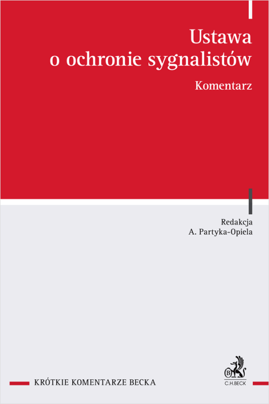 Ustawa o ochronie sygnalistów : komentarz / redakcja Anna Partyka-Opiela ; autorzy: Jan Bednarski, Julia Besz, Paulina Kumkowska, Maria Papis-Wieczorek, Weronika Papucewicz, Wojciech Piszewski, Marcin Serafin, Maria Szczepańska, Anna Tomiczek, Paweł Wieczorek, Natalia Zawadzka.