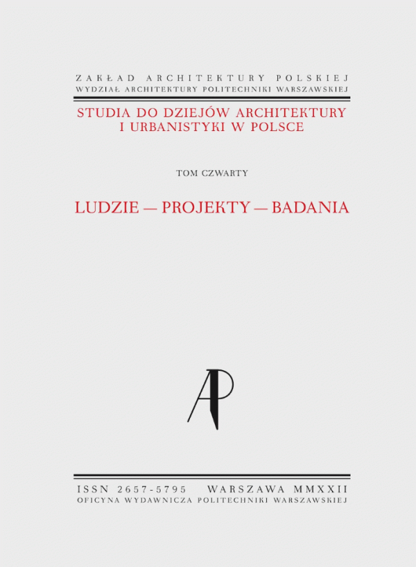 TekstJęzyk: polski Język streszczenia: angielski Serie: Studia do Dziejów Architektury i Urbanistyki w Polsce ; t. 4Szczegóły wydania: Warszawa : Oficyna Wydawnicza Politechniki Warszawskiej, 2022.Wydanie: Wydanie IOpis: 171 stron : ilustracje (w tym kolorowe) ; 30 cmTyp zawartości: - Tekst