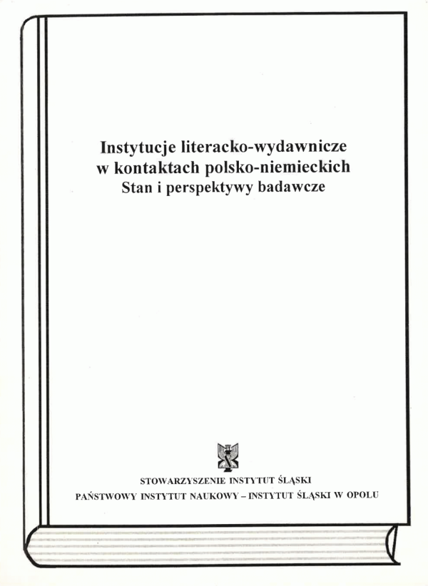Instytucje literacko-wydawnicze w kontaktach polsko-niemieckich : stan i perspektywy badawcze : materiały z międzynarodowej konferencji naukowej odbytej w dniach 16-17 grudnia 1999 r. w Kamieniu Śląskim / pod red. Marii Kalczyńskiej ; Stowarzyszenie Instytut Śląski, Państwowy Instytut Naukowy - Instytut Śląski w Opolu.